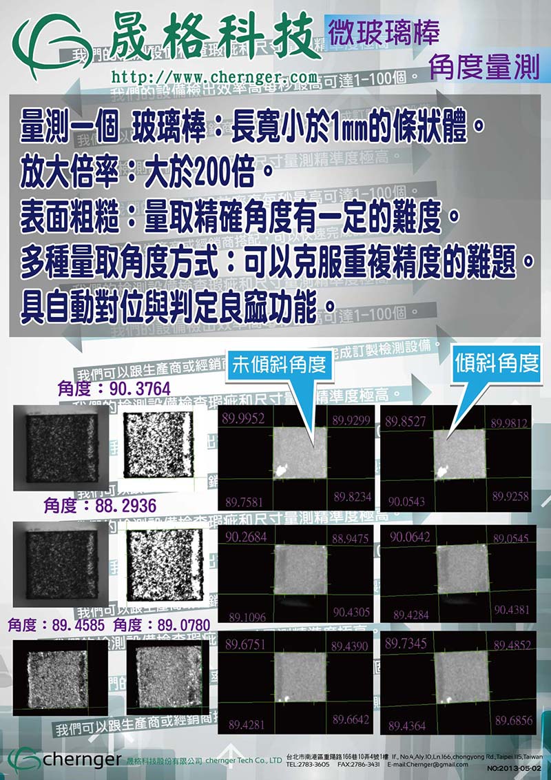 Glass Home E Applications E Product E Glass Micro Glass Rod Angle Measurement 檢測項目:尺寸量測 Download Smart Phone Lens Defect Inspection 檢測項目:亮點、流痕、氣泡、髒汙、點膠異常、刮傷 Download