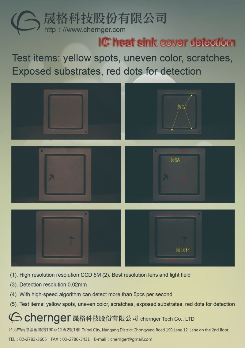 檢測項目:刮痕、碰傷、汙點、針孔、雜質紋等