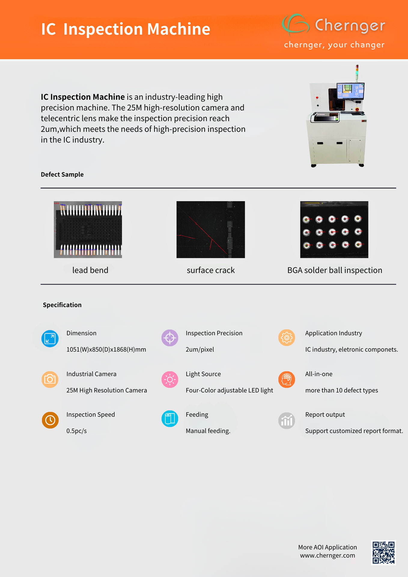 - Machine Learning: equipped with AI automatic learning system to distinguish qualified and defective products