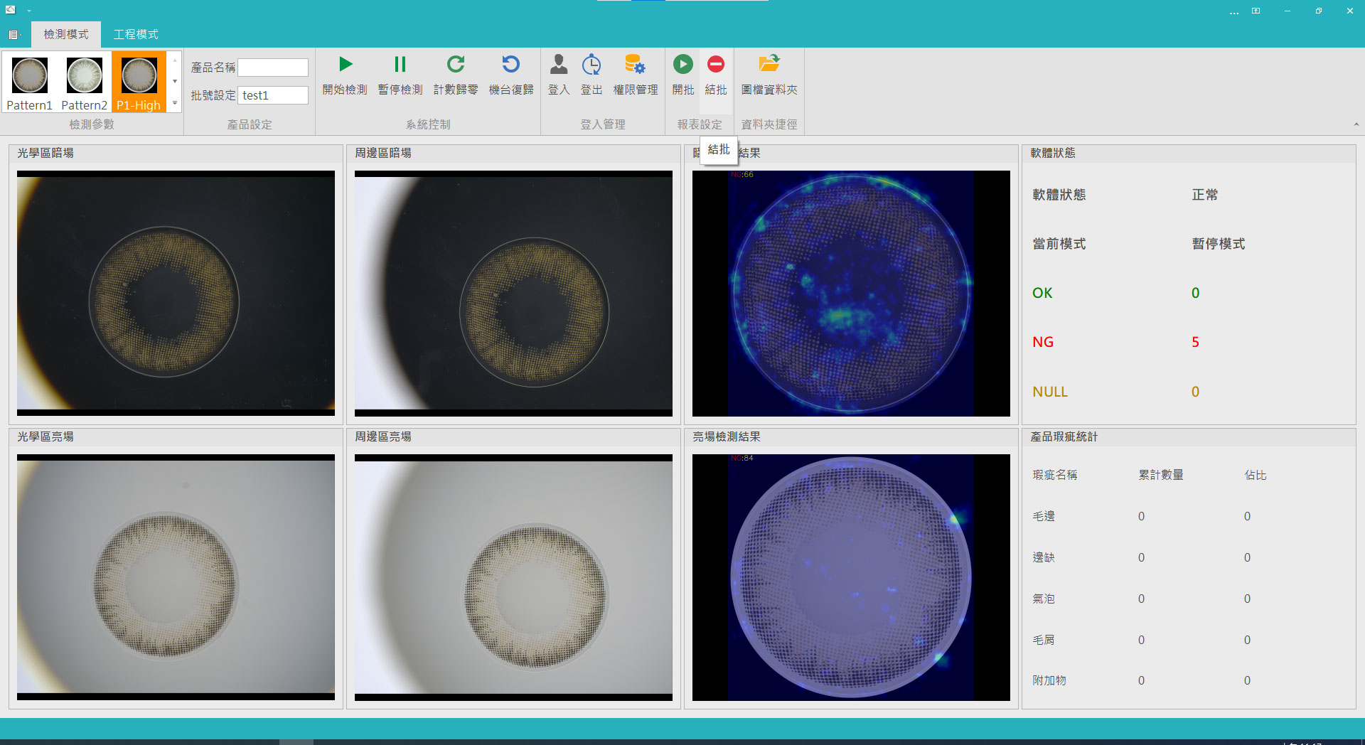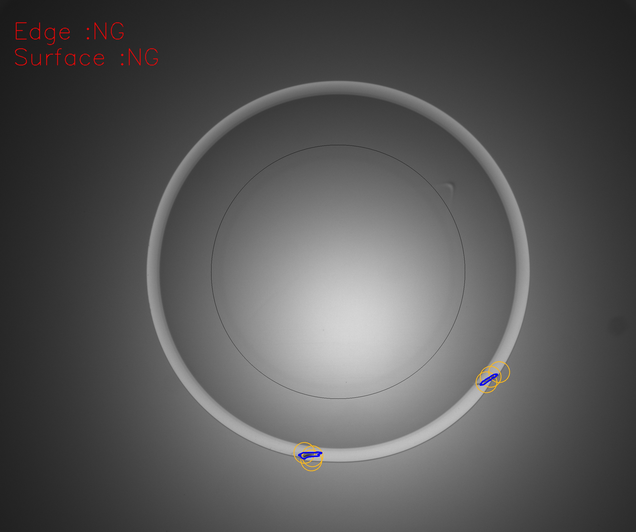 - Multi-light field detection:Through bright and dark field (two light sources), the ability to detect the pattern of the color lens is improved, so that the software can detect the defects covered by the pattern.
